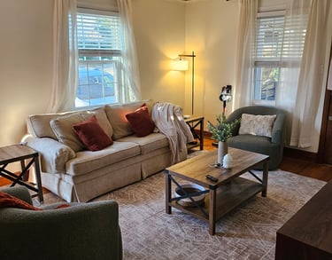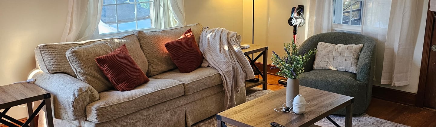 Sage & Stone Cottage is located just minutes from the University of Lynchburg and Liberty University. Perfect for families, professionals, and travelers, the home features a full kitchen, a cozy living area, coffee & tea bar, Roku TV, fast Wi-Fi, keypad entry, driveway parking, and a quiet, family-friendly neighborhood.